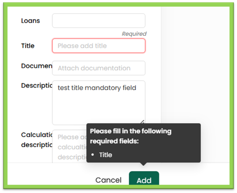 - Click save and please see below please ensure all mandatory fields are populated; indicated by the required indicator.
